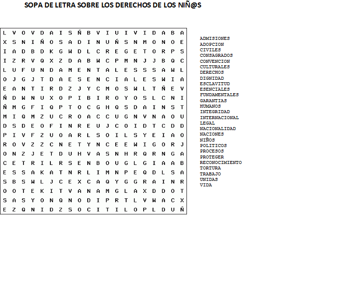 SOPA DE LETRA DERECHOS DEL NIÑO